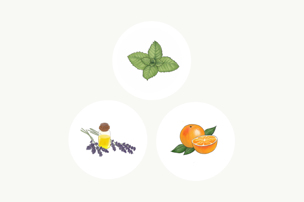 歴史上、聖書の中で聖油を作るのに使われた植物がミント(セイヨウハッカ)であるということから、新たな始まりを意味するミントの浄化の香りに、ラベンダー油とオレンジ果皮油をブレンドし、奥行きを出しました。すべての調香成分もオーガニック成分にこだわり配合しております。