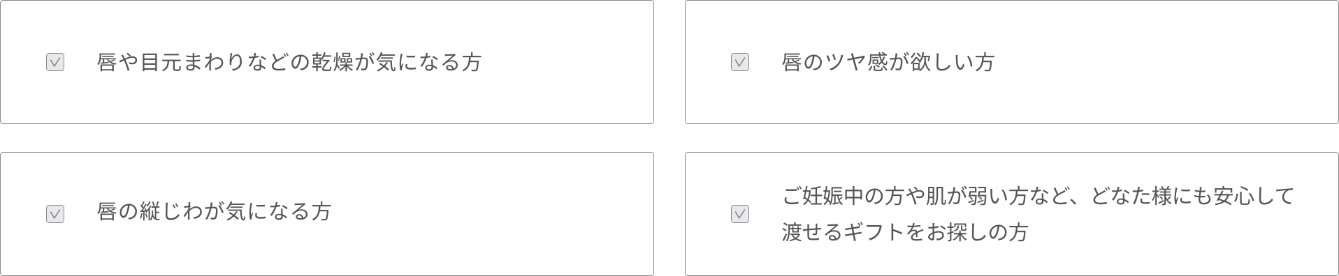唇のデイリーケアはもちろん、口紅の下地、目元まわりのケアとしてもご使用いただけます。 また、男性やお子様にも使いやすいマットな質感です。
