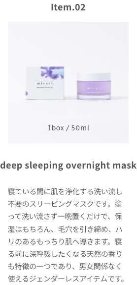 また昔からアジアでは薬草として使われてきたお花の抽出物であるフナバラソウエキス、タチアオイ花エキス、クチナシ果実エキスの配合により、寝ている間に肌のコンディションを整え、肌ストレスによって敏感になりやすい肌を落ち着かせてくれます。