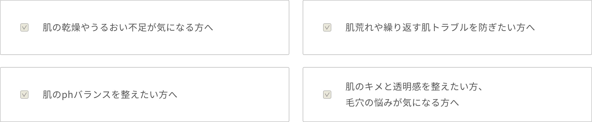 乾燥が気になる方、肌荒れを繰り返しやすい方、肌のpHバランスを整えたい方など、すべての肌タイプの方にご使用いただけます。天然由来成分が主体のため、特に敏感肌の方にもおすすめです。