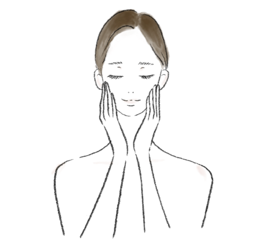 深呼吸しながら、顔全体をゆっくりとハンドプレスしてうるおいを定着させます。