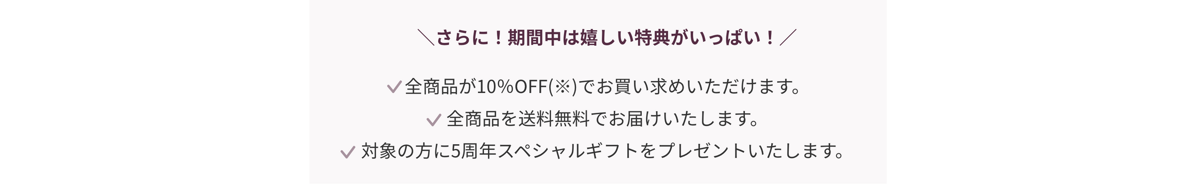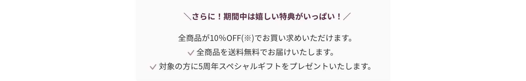ご購入金額に応じて数量限定の5周年スペシャルギフトをプレゼントいたします!