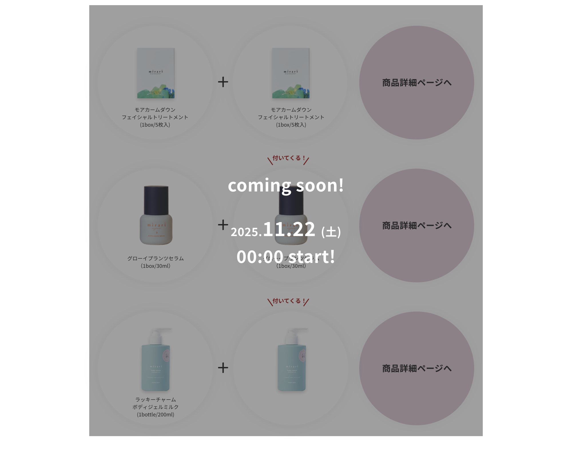 「mirari」の大人気フェイシャルトリートメントマスク「more calm down Facial Treatment Mask」をはじめ、