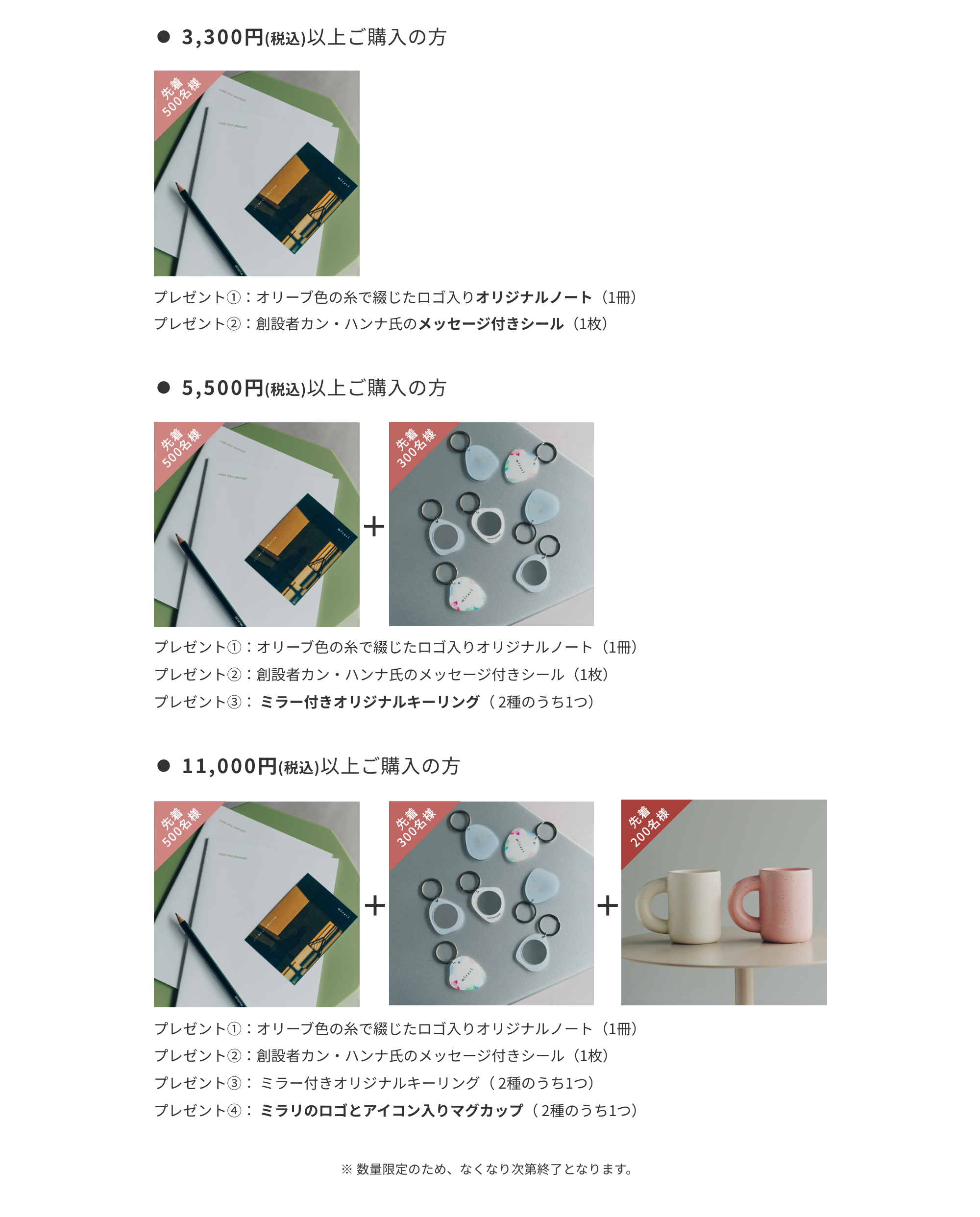 すでにたくさんのお問い合わせをいただいたミラリ5周年スペシャルギフトのご案内となります。