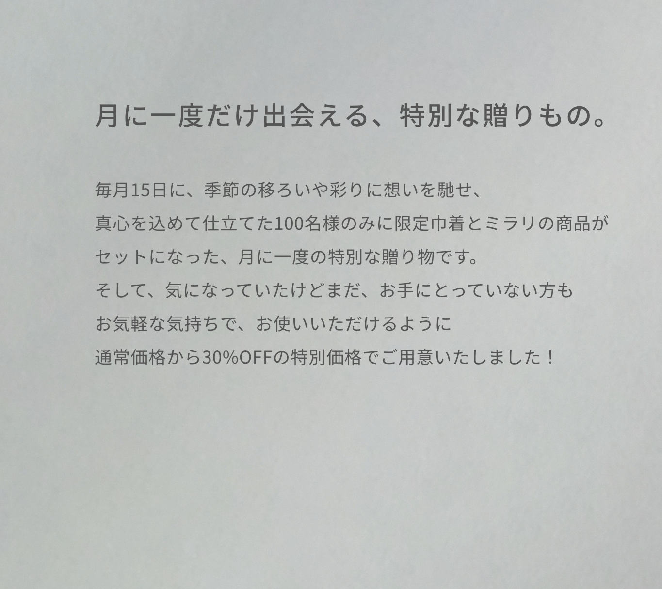 月に一度だけ出会える、100名様限定の特別な贈りもの。