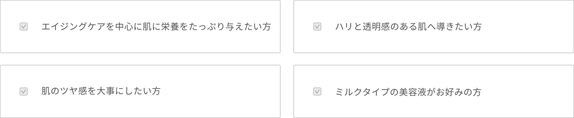 大人の肌にハリと輝きを与え、使用後は、ハリと透明感のある滑らかな肌へ導きます。